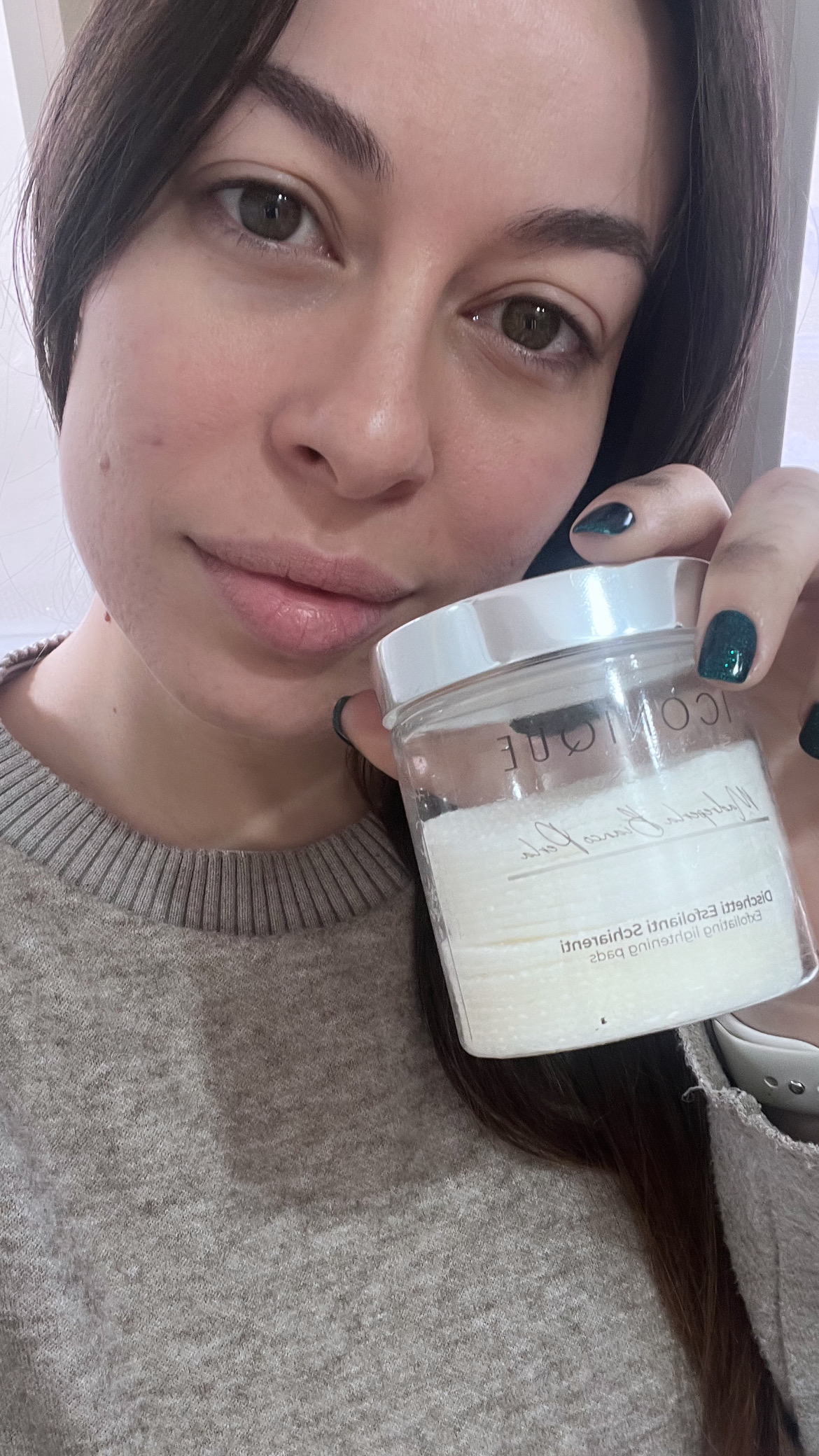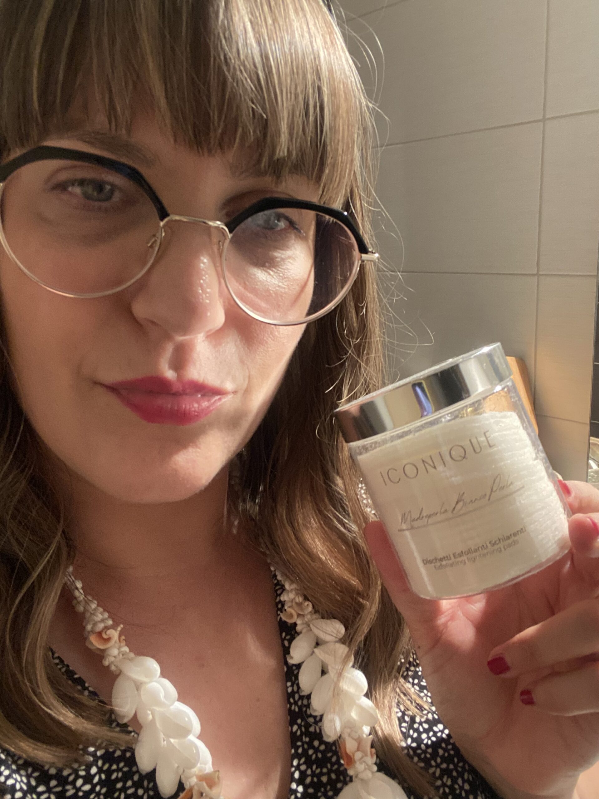 Ho adorato fin da subito i dischetti esfolianti della linea Madreperla perché li ho trovati molto utili e comodi. Essendo già imbibiti di acido glicolico e lattico non si pone il problema di dover dosare questi ingredienti abbastanza particolari da utilizzare, inoltre posso scegliere se attuare un’azione esfoliante maggiore o meno grazie ai due lati diversi (liscio e zigrinato). Dopo il loro utilizzo la pelle è bella luminosa e recettiva per altri trattamenti più specifici. Mi piacciono ♥️