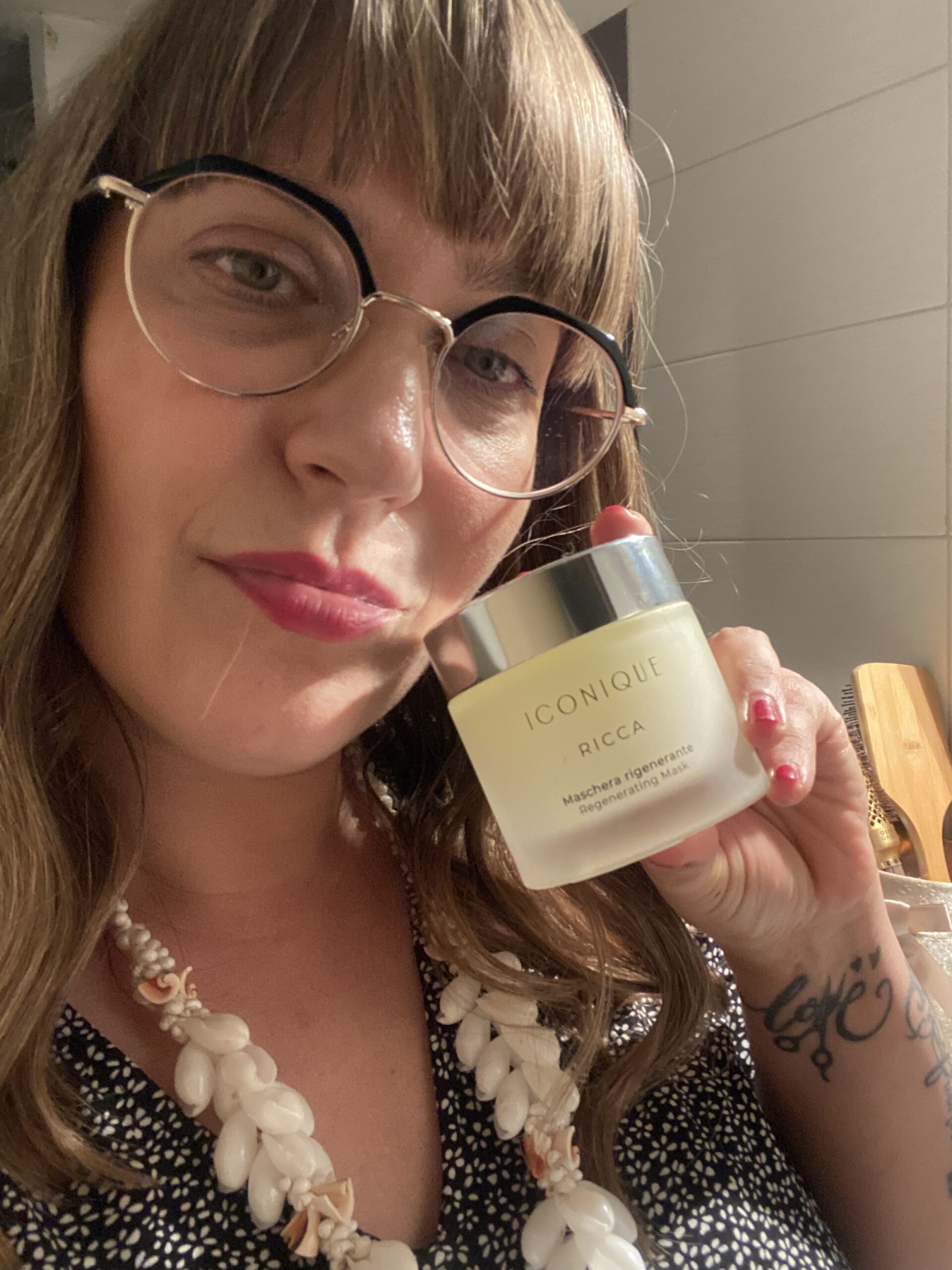 Ricca è stato il prodotto che mi ha fatto scoprire iconique grazie alla mia estetista di fiducia. Da quel giorno è diventato un “mai più senza” e il capostipite di tutta una collezione dei vostri prodotti. Definirla soltanto maschera viso è un’eresia: Ricca è tutto! Ovviamente lo utilizzo come maschera quando ho bisogno di rivitalizzare la mia pelle ma spesso anche soltanto come crema viso applicandone un leggerissimo strato. D’estate di solito ho la tendenza a scottarmi, nonostante la protezione solare, e diventa un toccasana per la pelle arrossata dal sole. Poi ha un odore talmente paradisiaco che a volte lo uso anche come crema profumata per collo e decolleté. Il mio fidanzato invece costantemente me ne priva per le sue labbra screpolate. Insomma quando finisce in casa devo assolutamente riaverla per fare sonni tranquilli.